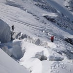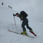 Descente par la face nord...100m expo dans le haut, en S4et un passage S5...45°sur les 120 premiers mètres !