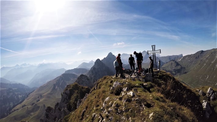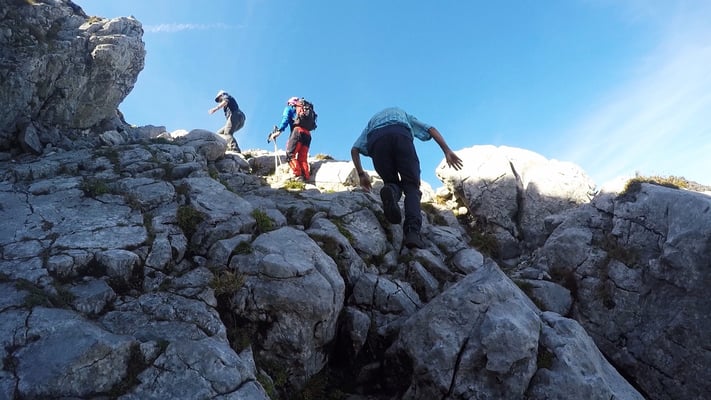Un groupe "escalade " dans la voie Marti des Gastlosen