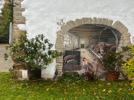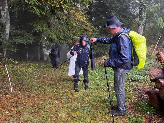 le 14.10, sous une pluie presque continue, Eddy nous fait découvrir l'ancienne écurie à mulets
